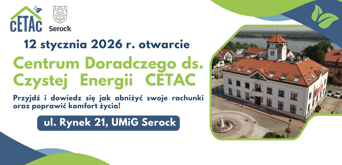 Uroczyste otwarcie centrum CETAC w Serocku zaplanowano na 12 stycznia 2026 r. Od tego dnia mieszkańcy będą mogli, w wyznaczonych godzinach, odwiedzać punkt w Urzędzie Miasta i Gminy, aby skorzystać z pierwszych konsultacji i pełnego wsparcia doradczego.