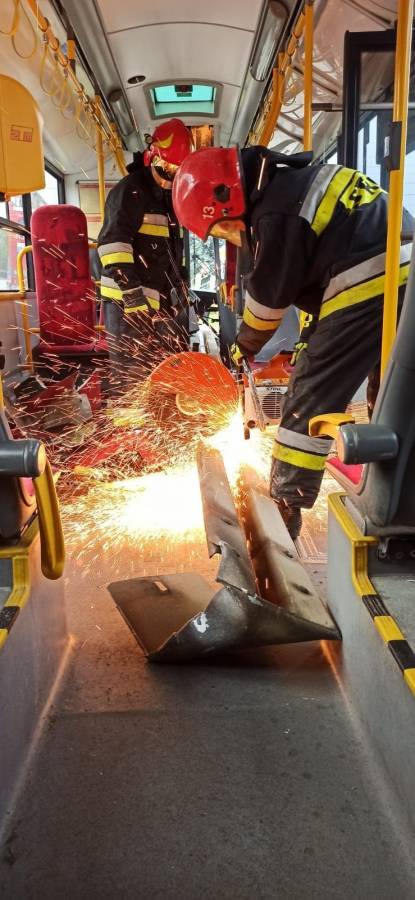 Zdjęcia Groźny wypadek w Rembertowie: bariera energochłonna przebiła autobus miejski osiem metrów w głąb [ZDJĘCIA] - fotorelacja